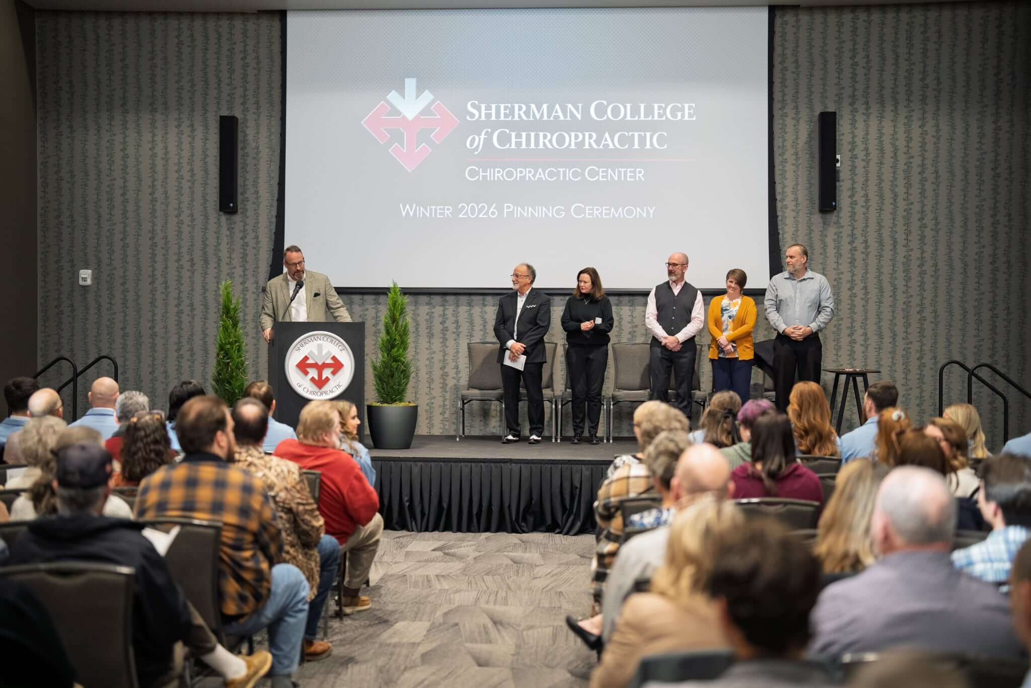 Interns celebrated the start of the final phase of their chiropractic education at a pinning ceremony on January 16 at the Sherman campus in Spartanburg, South Carolina. The college live-streamed the event so interns’ family and friends could watch from out of town.