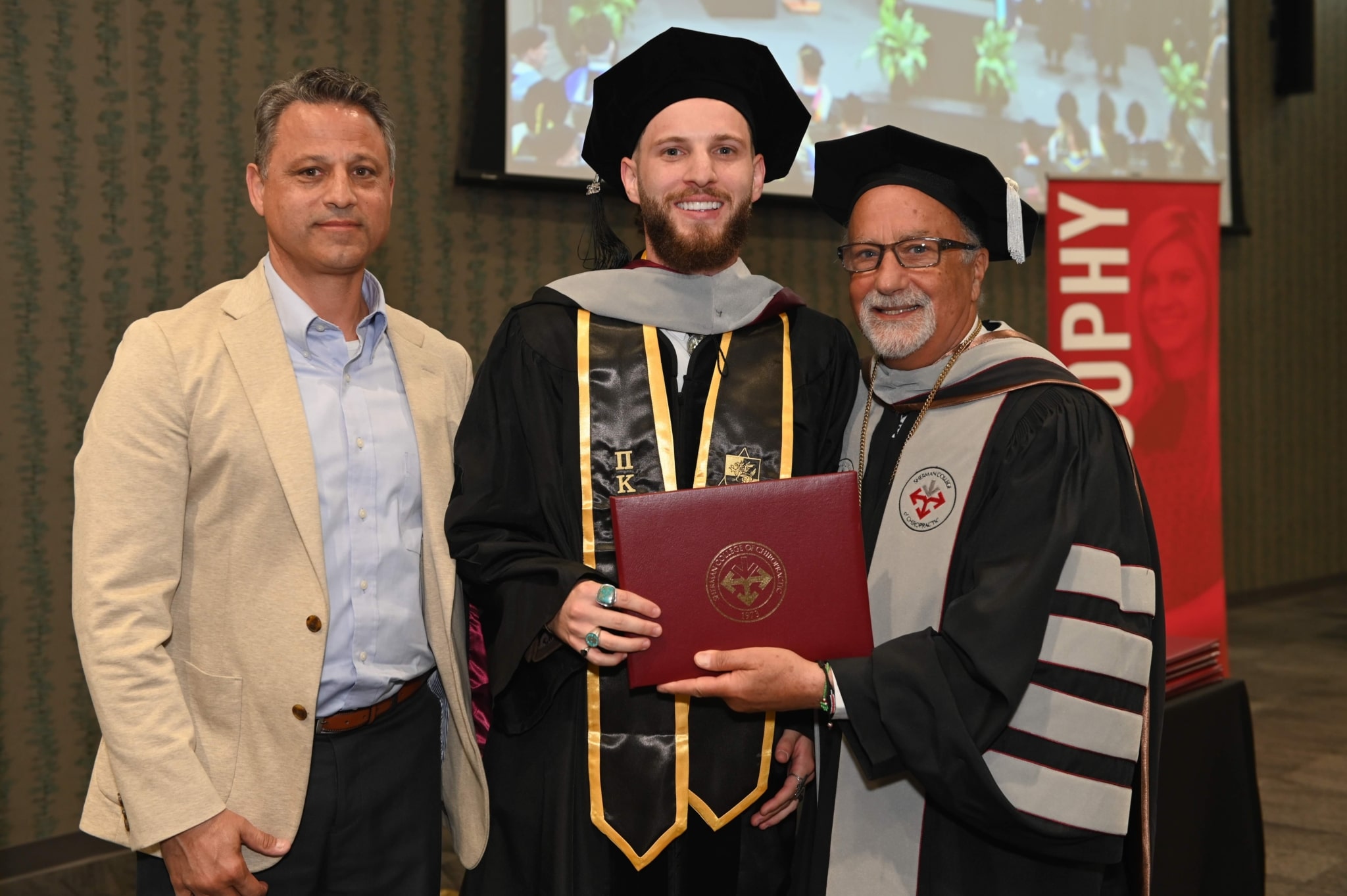 Many students were recognized throughout the ceremony for academic honors, outstanding service and volunteerism, clinical excellence, and exceptional philosophy distinction. Bobby Findley, D.C., A.C.P., Sherman instructor of clinical sciences and case doctor at the college’s Chiropractic Center, delivered a humorous and genuine address, offering memorable advice to the DC2Bs on what not to do as they embark on their chiropractic journey to help and serve others.
